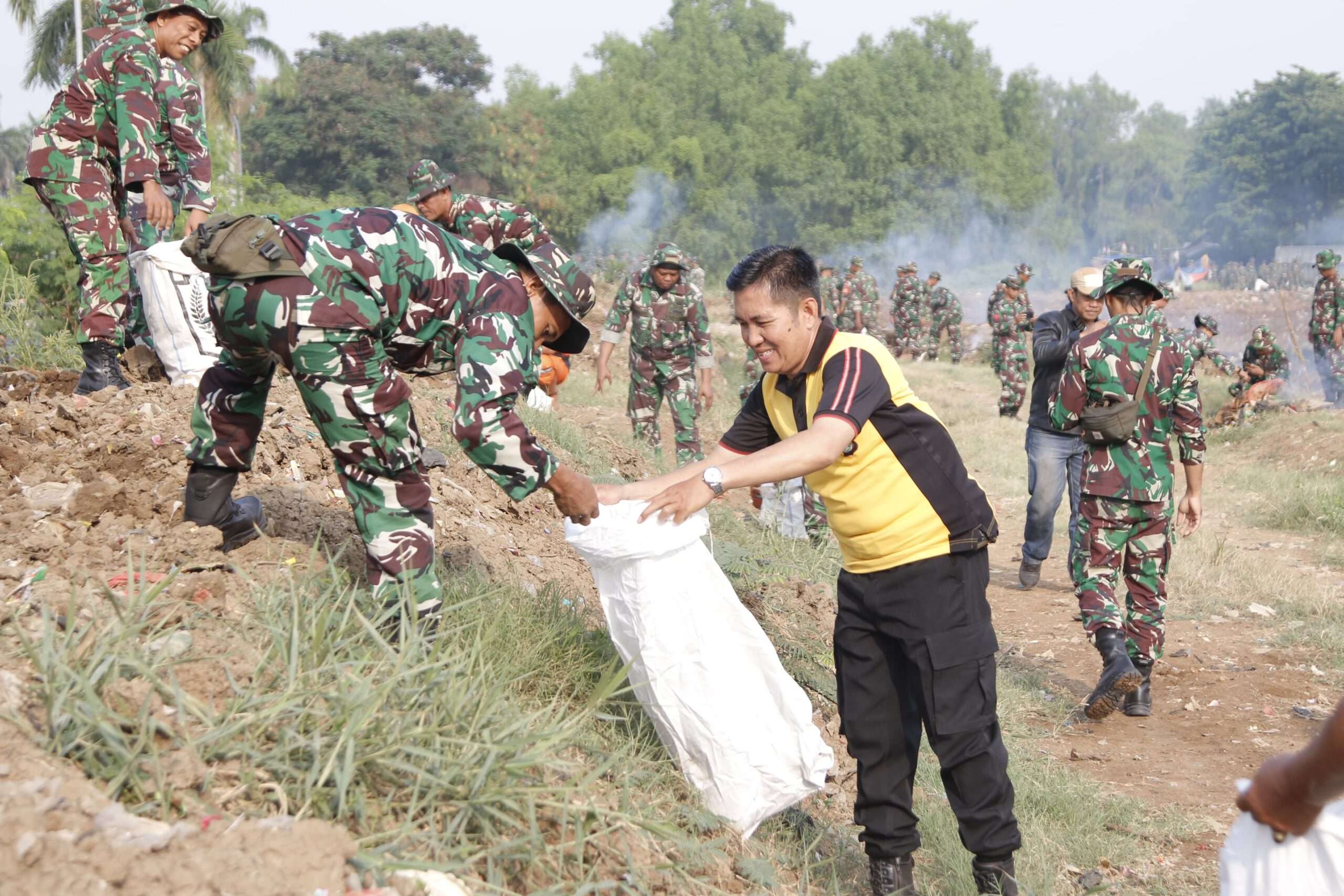 Sebanyak 2.225 personil turut berpartisipasi dalam kegiatan ini, yang terdiri dari TNI AD, TNI AL, TNI AU, Polri, serta masyarakat dan komunitas. Kegiatan ini juga didukung dengan berbagai peralatan, termasuk LCR, pelampung, serokan sampah, sabit, mesin pemotong rumput, cangkul, dan truk dinas kebersihan DKI Jakarta.