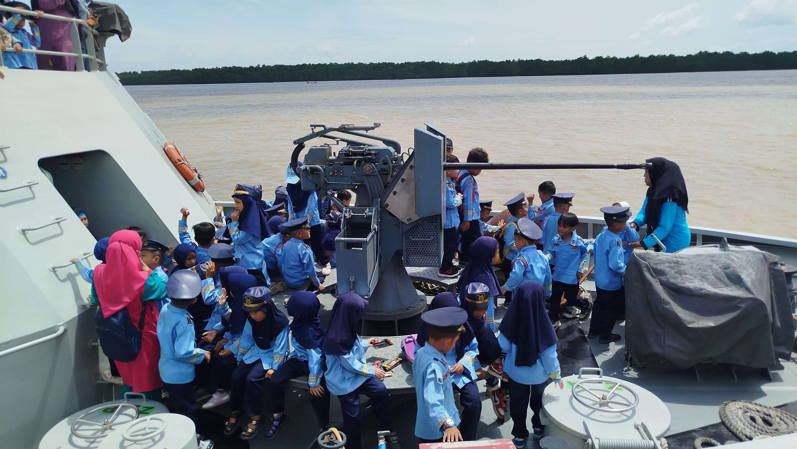 Salah satu momen yang paling dinanti adalah kesempatan bagi para siswa untuk mengunjungi Kapal Angkatan Laut (KAL) Pandang 1-I-72. Disana, mereka diperkenalkan dengan berbagai fungsi kapal, perlengkapan navigasi, serta peran penting TNI AL dalam menjaga keamanan laut Indonesia.